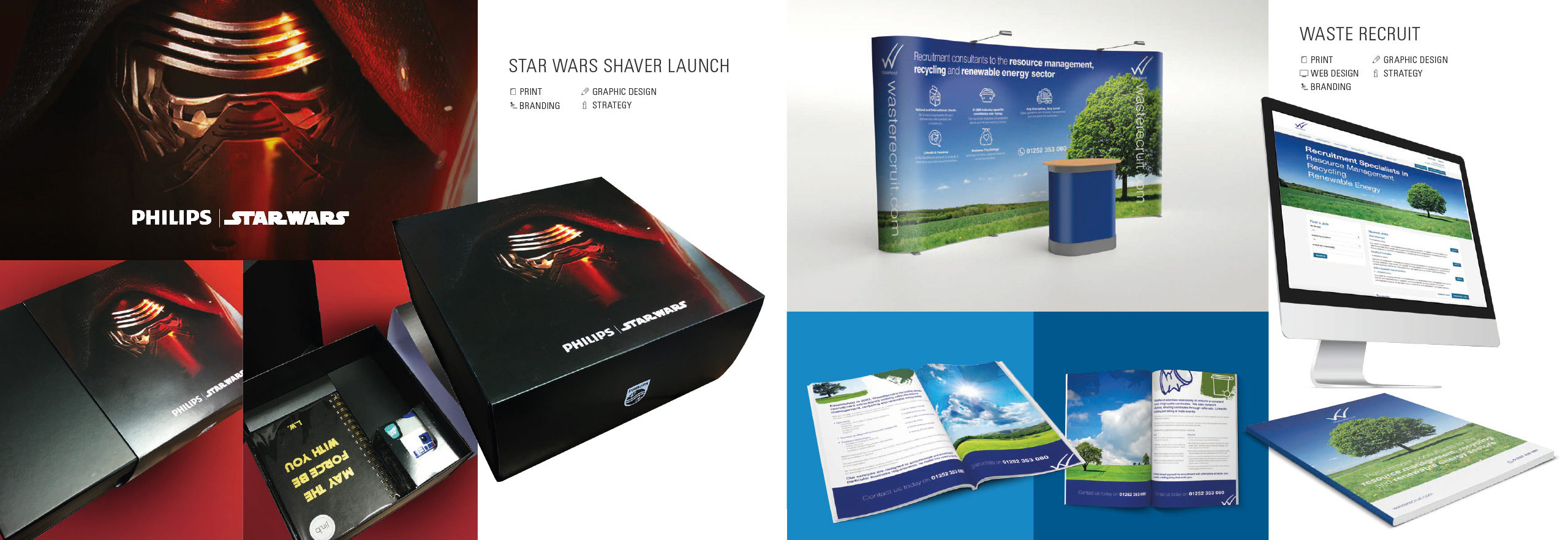 To summarise, we have worked on Star Wars direct mail peices, internal communications by way of magazine design, website and landing page designs, branding, social media, advertising, email marketing, pull up banners and exhibition materials – and all for our wonderfully eclectic clients! Having such variety makes every day different and I beleive maximises my own, and my teams, creative out put.