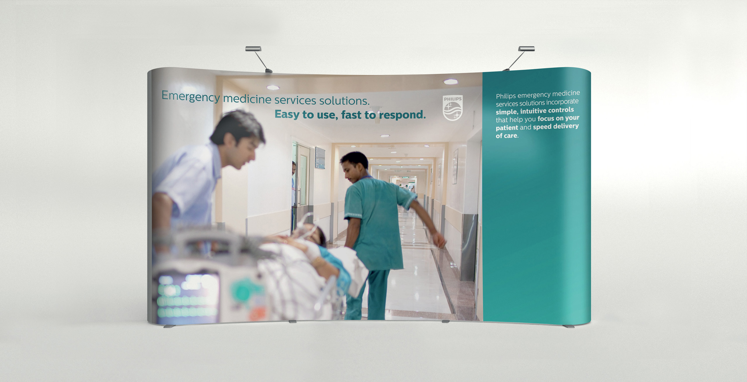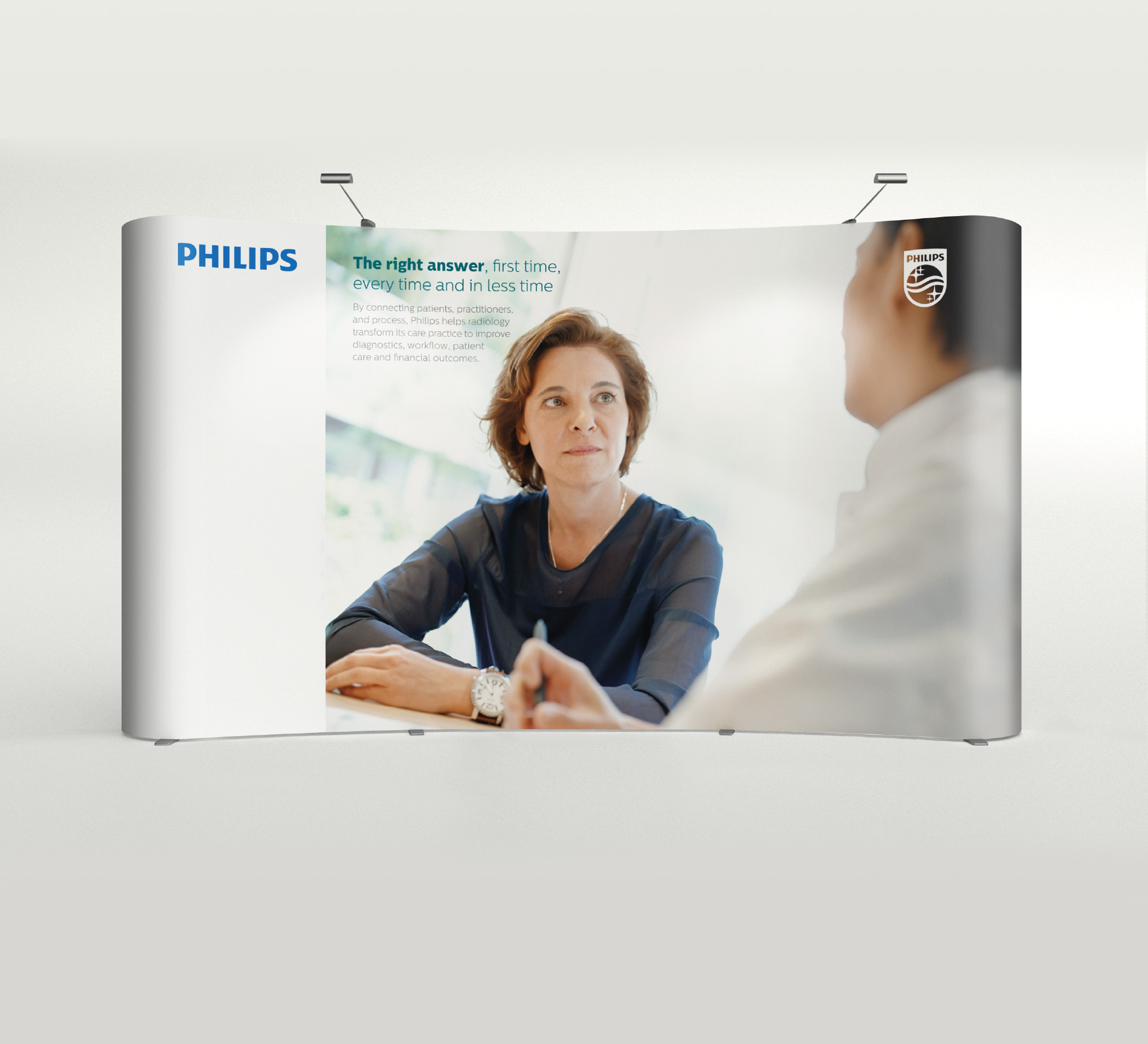 Making something work on a A5 leaflet, and then a 3×3 pop up for a exhibition has its challenges, and one that Pelling undertook for Philips Healthtech.