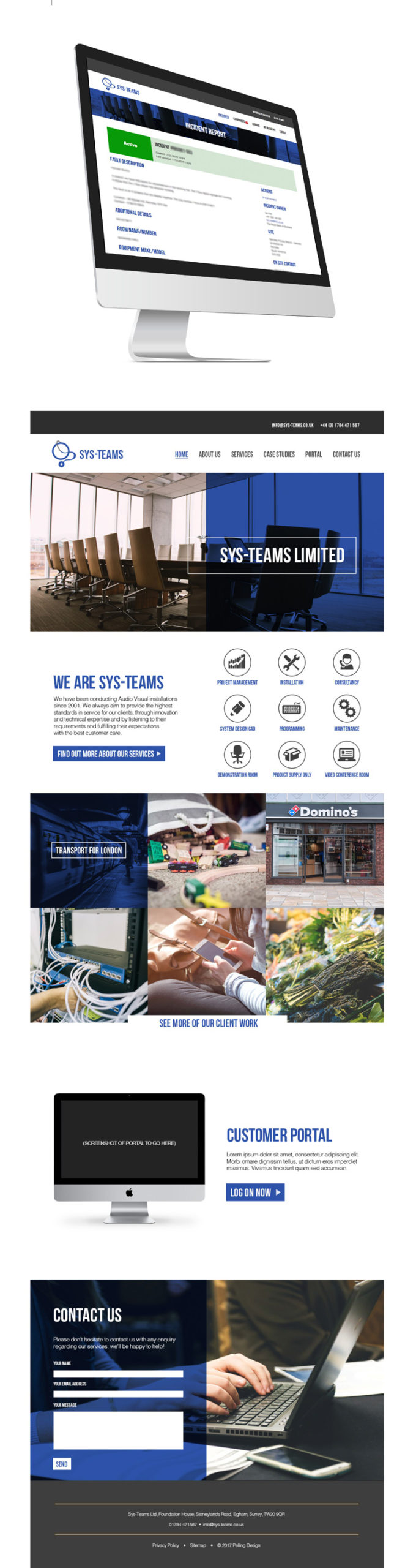 Sys-Teams installs and maintains audio video installations all across the country. They approached us to create a website with a support portal, where existing clients can login and report incidents. This notifies the admins so that they can dispatch engineers etc.